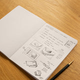 A notebook that actually lays completely flat thanks to its Smyth sewn binding that opens 180 degrees. Particularly helpful for lefties and writing on the backs of the pages. The larger format gives you room to spread out your thoughts, sketch concepts, or plan projects. Built to help you think better on paper.