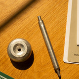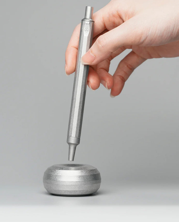 This sleek aluminum paperweight is milled from solid aluminum and doubles as a pen stand for the matching HMM Ballpoint Pen. A nice accent to any desk setup.