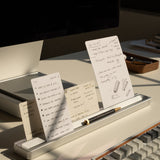 The two slots give you versatility to move your cards around in various configurations, and the front also conveniently doubles as pen tray. The substantial weight (almost 1.5lbs!) and rubber pad on the bottom keeps it firmly in place on your desk.