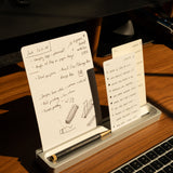 The two slots give you versatility to move your cards around in various configurations, and the front also conveniently doubles as pen tray. The substantial weight (almost 1lb) and rubber pad on the bottom keeps it firmly in place on your desk.