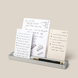 Completed cards can be slid under the bottom of the stack of cards in the wood holder or discarded (the cards are fully recyclable).