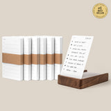 The wood card holder keeps your Today card in front of you while the open-back is designed to store your completed cards.