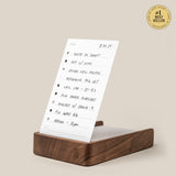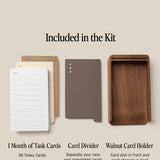 The wood card holder keeps your Today card in front of you while the open-back is designed to store your completed cards.