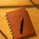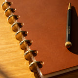 Eight solid brass discs let you add, remove, and reorganize pages freely. Move your best ideas forward. Pull out completed projects. Refill exactly where you need it.